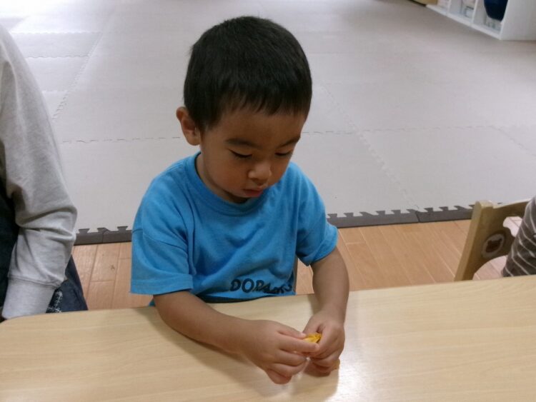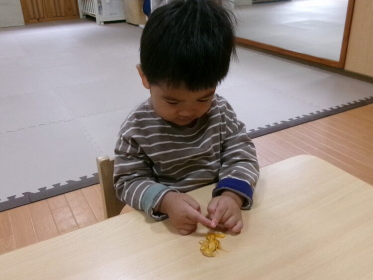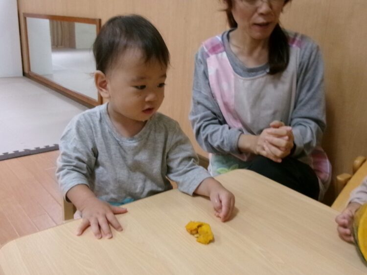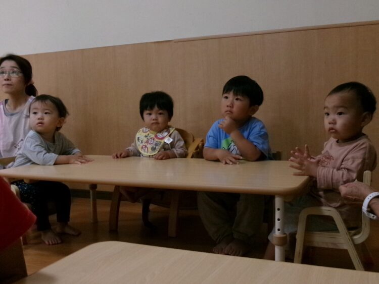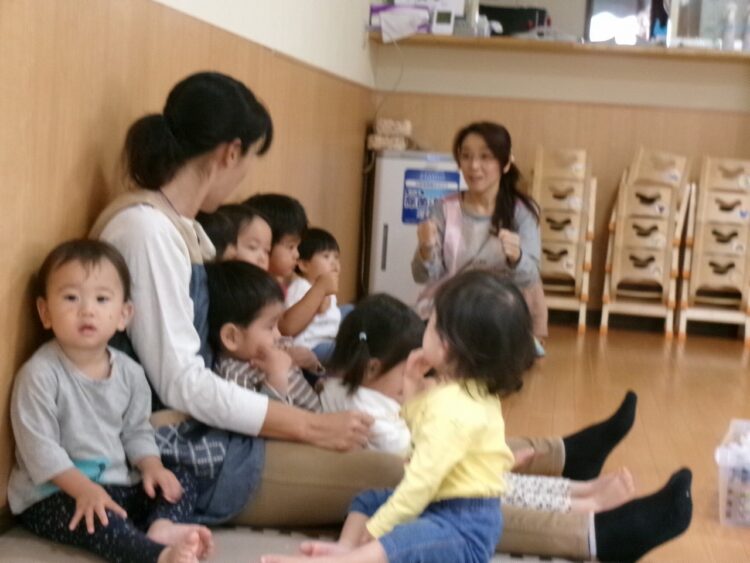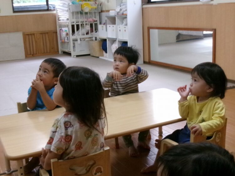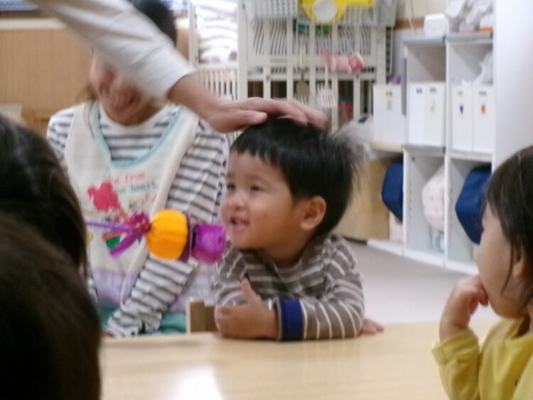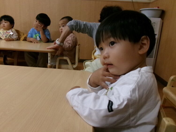真剣なまなざしで保育士のお話を聞いているさくらんぼさん🍒