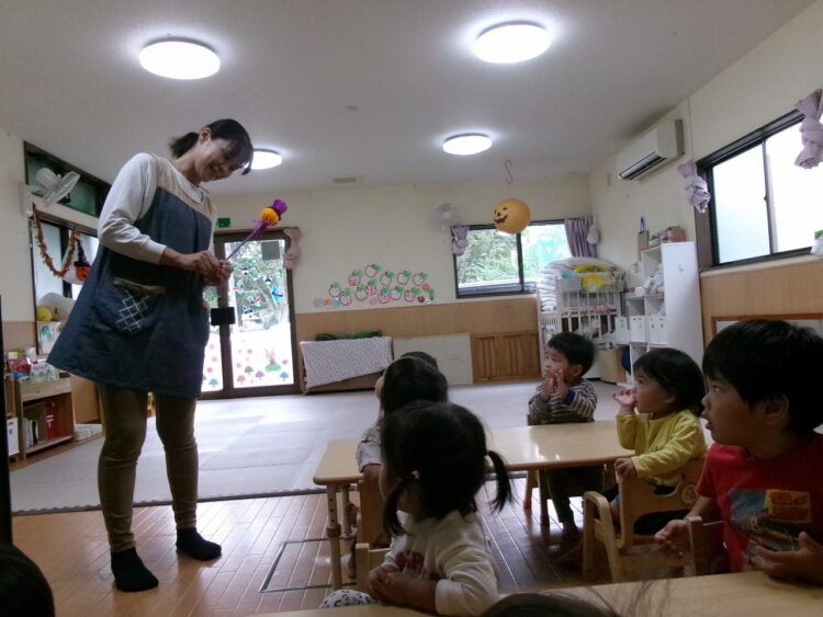 ちょっと難しいですが、さくらんぼさんにハロウィン🎃についてのお話をしてみました。