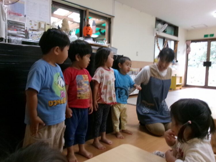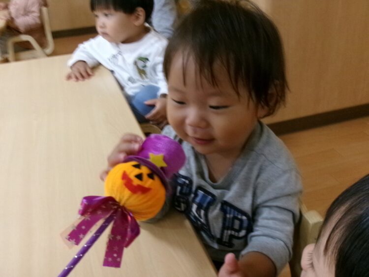 楽しかった運動会ごっこが終わると、お部屋の中には一気に雰囲気が変わり、かぼちゃのお化けがいっぱい(≧▽≦)