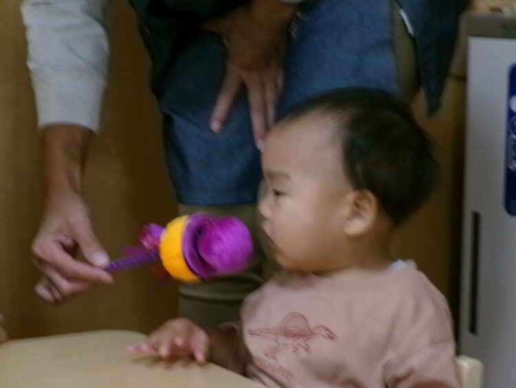 0歳児こあらグループさんは、マイクに興味津々♬