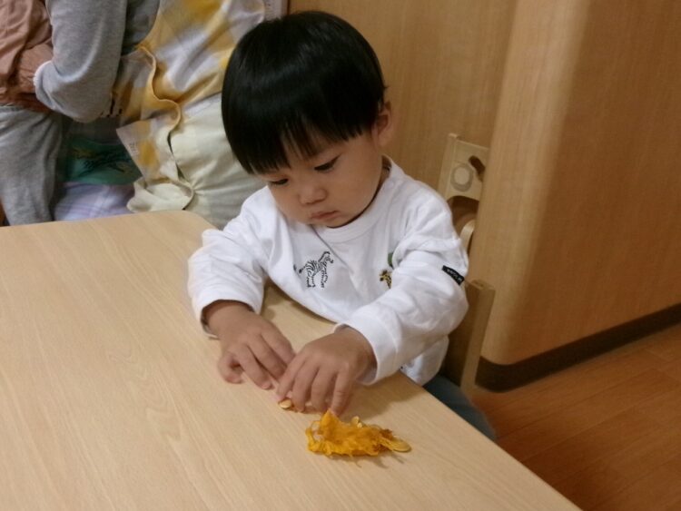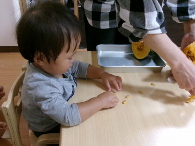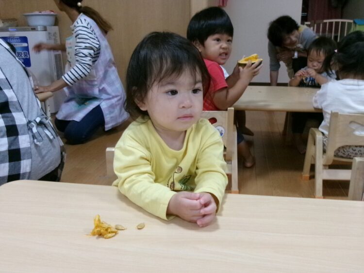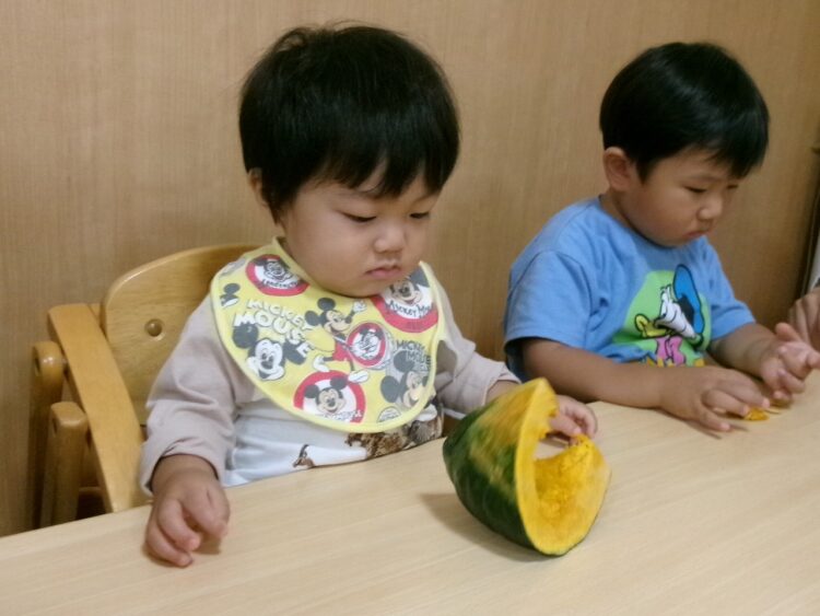 ハロウィン🎃のお話をしたので、食育にはかぼちゃが登場!!