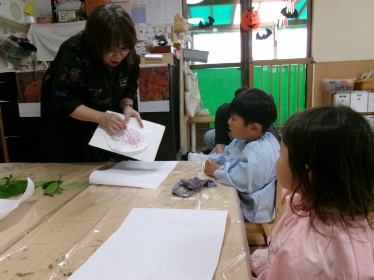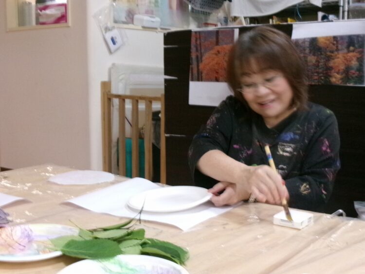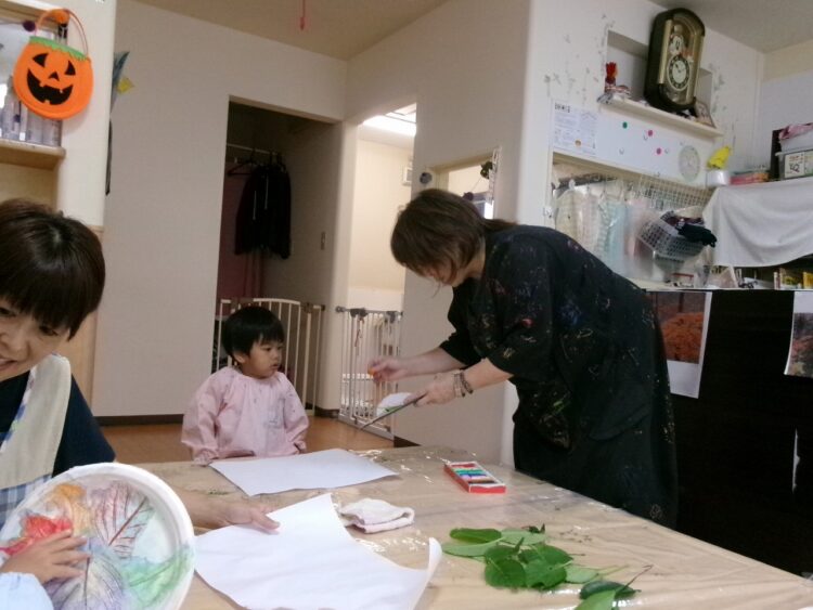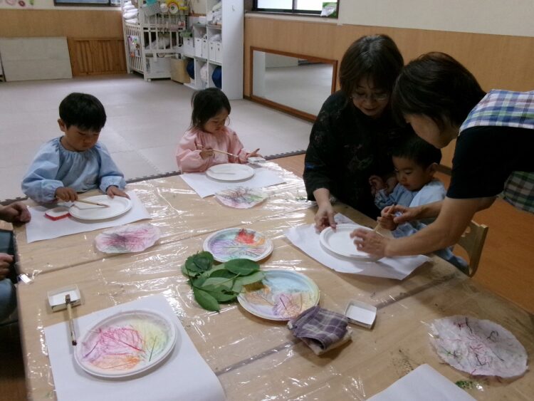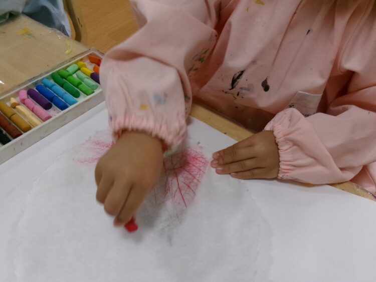 葉っぱを摺り出して秋の紅葉を表現していきます。