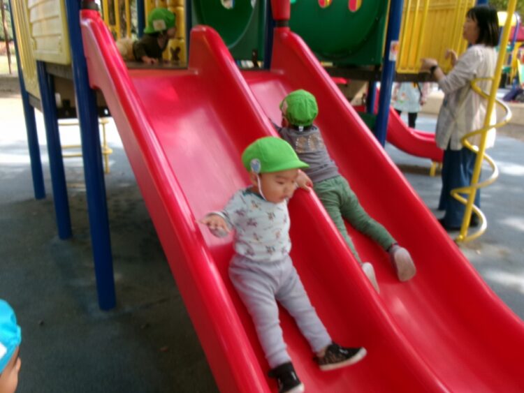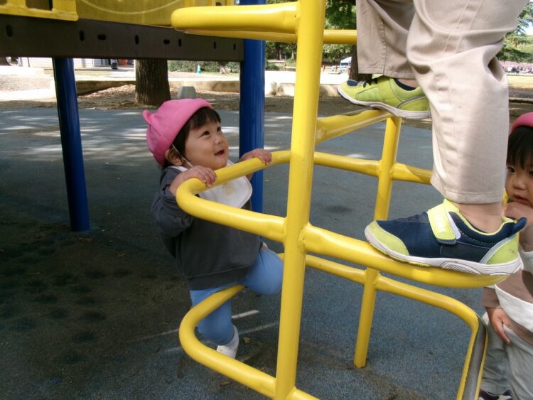 いつもと違う遊具に、ちょっと緊張している様子のさくらんぼさんもいましたが、自分からどんどん登っていくことができ楽しそうです(≧▽≦)