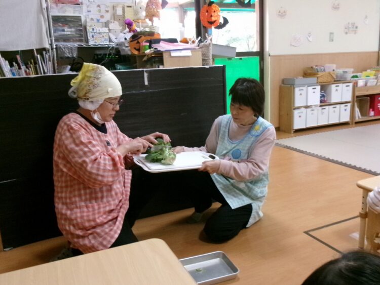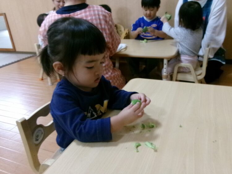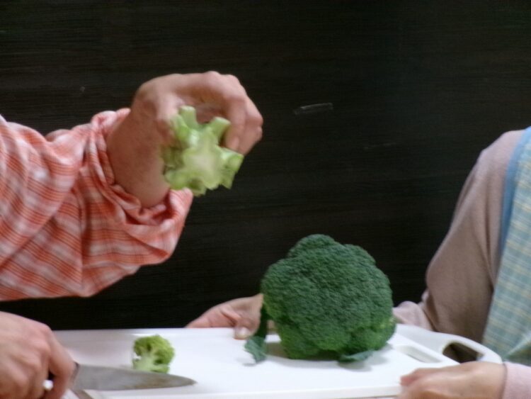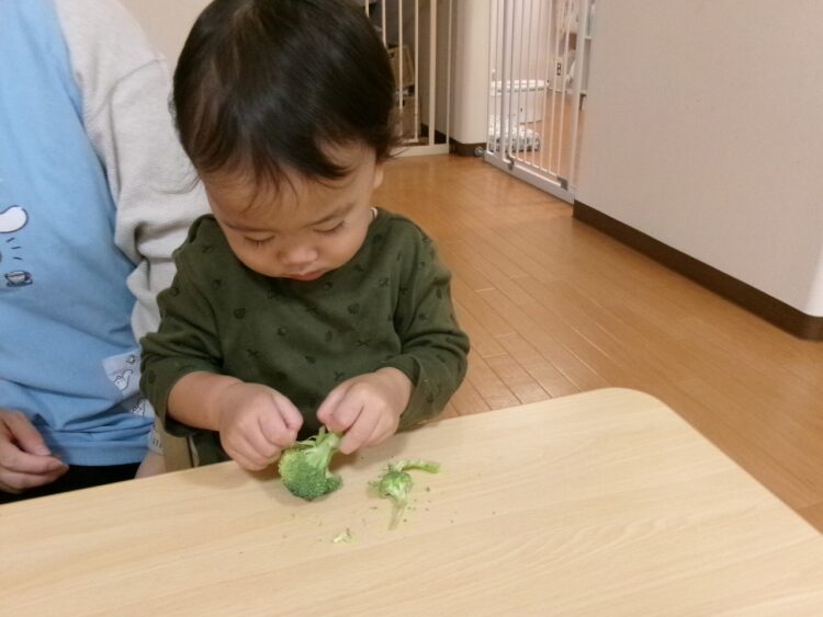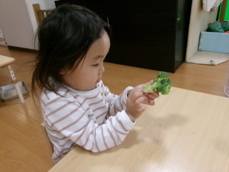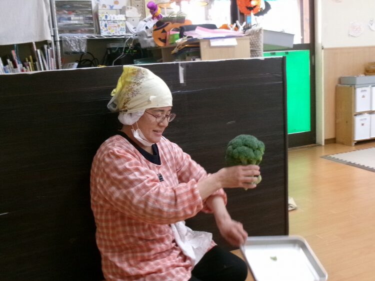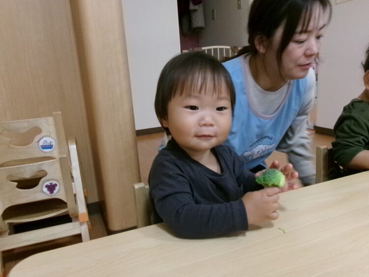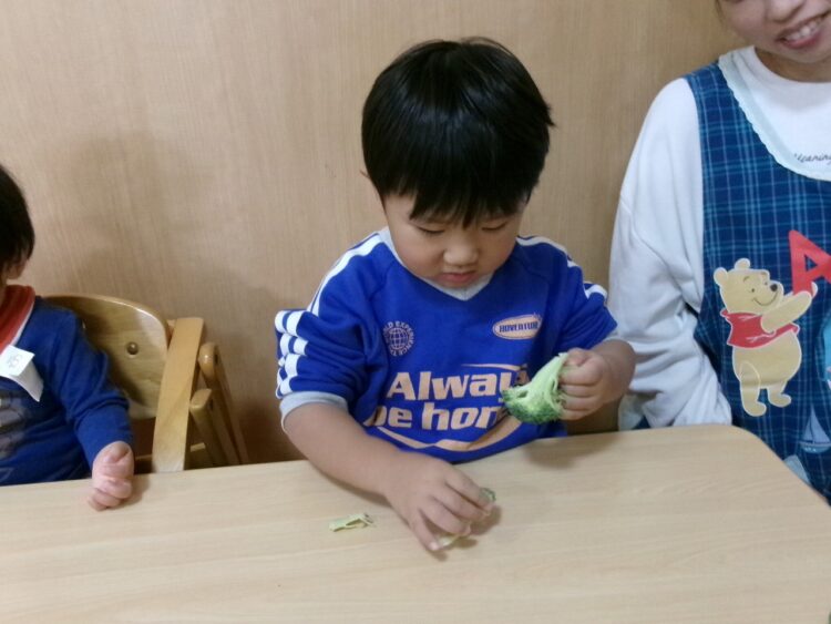さくらんぼさんも、ブロッコリーの皮むきに挑戦です!!