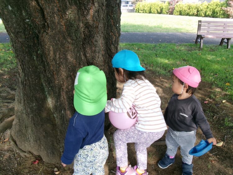 その気の木陰で遊ぶと、涼しくて気持ちがいいんです(´ω`*)