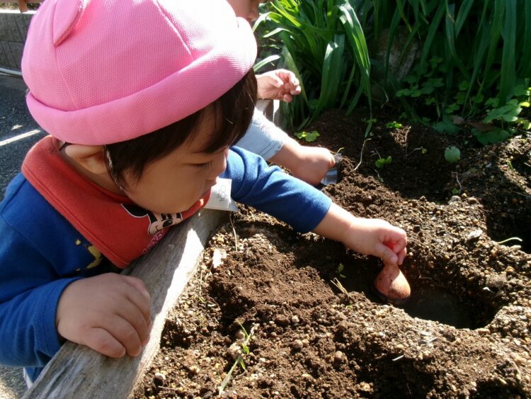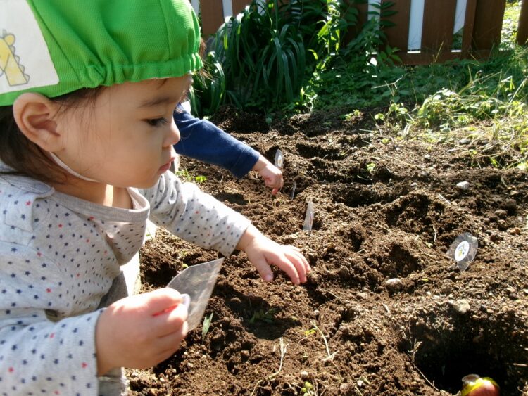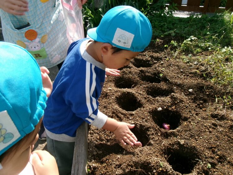 穴の中に球根を入れて、優しくお布団(土)をかけてあげます。