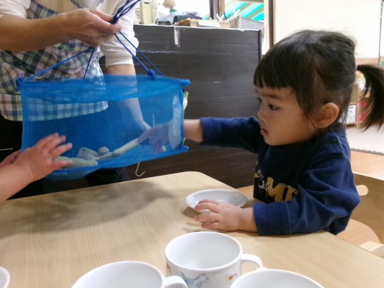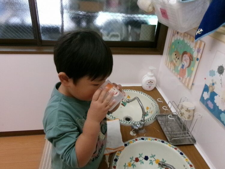 さくらんぼ保育園では、11月に入り2歳児ぱんだグループさんが「うがい」を開始しました。