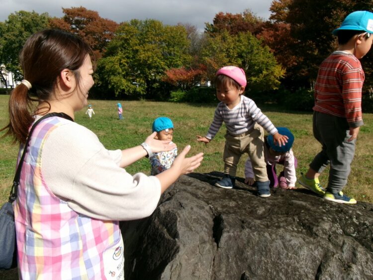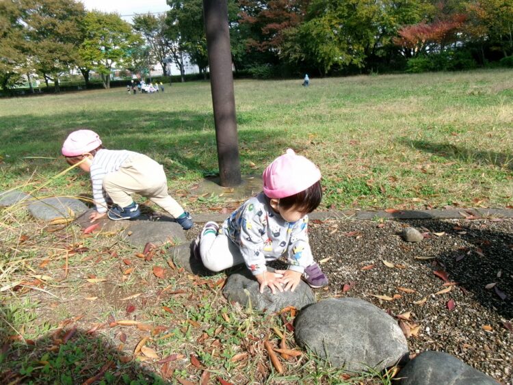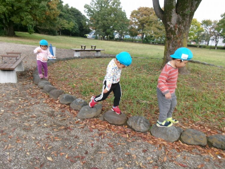 飛び石のようにジャンプして…「落ちないように、1・2・3~!!」