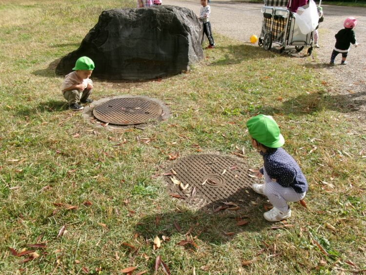 「いいもの、み~つけた♡」「この大きな〇(マンホール)はなんだろうね?」