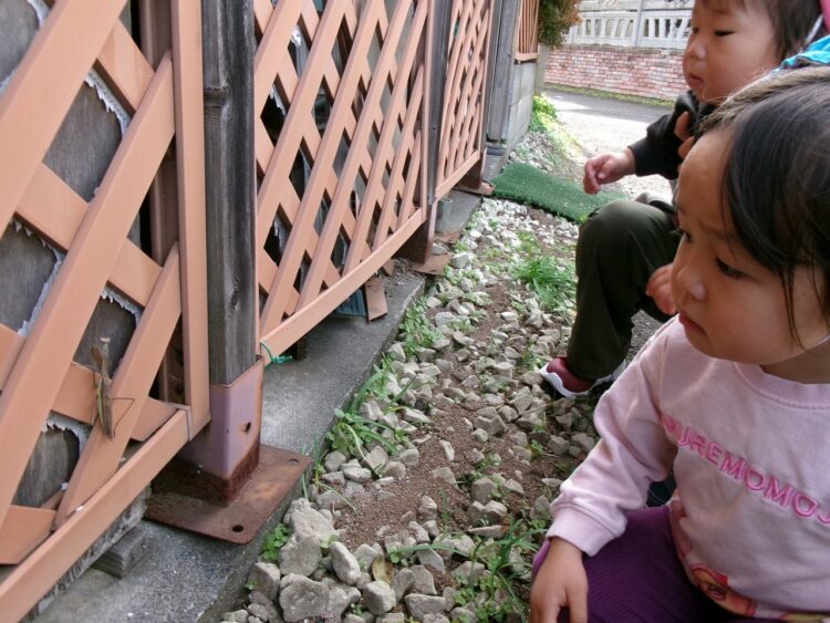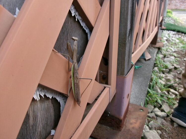 「見てみてー! ここに小さいお友だち(カマキリ)がいるよ!!」