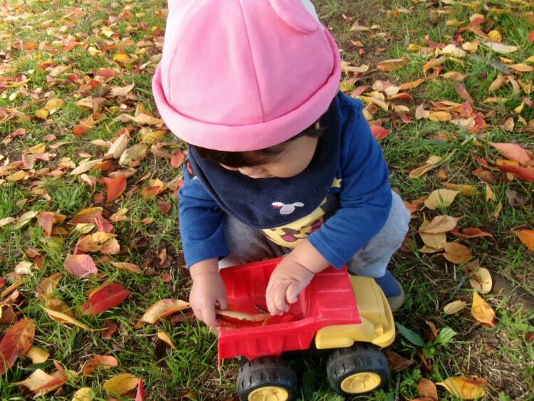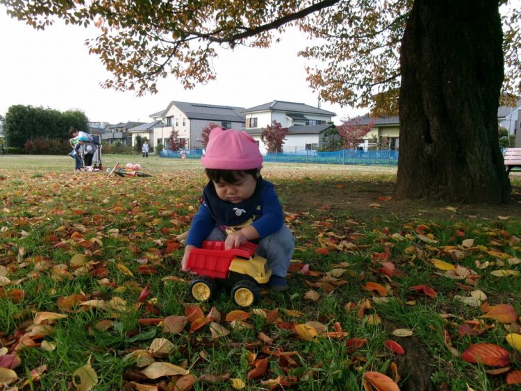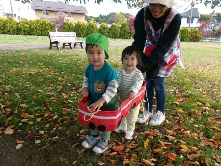 秋の落ち葉をダンプカーに乗せて、上手に運んでいました(´ω`*)