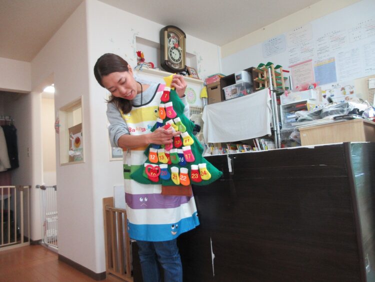 アドベントカレンダーを見ながら、クリスマス会を心待ちにしています♡