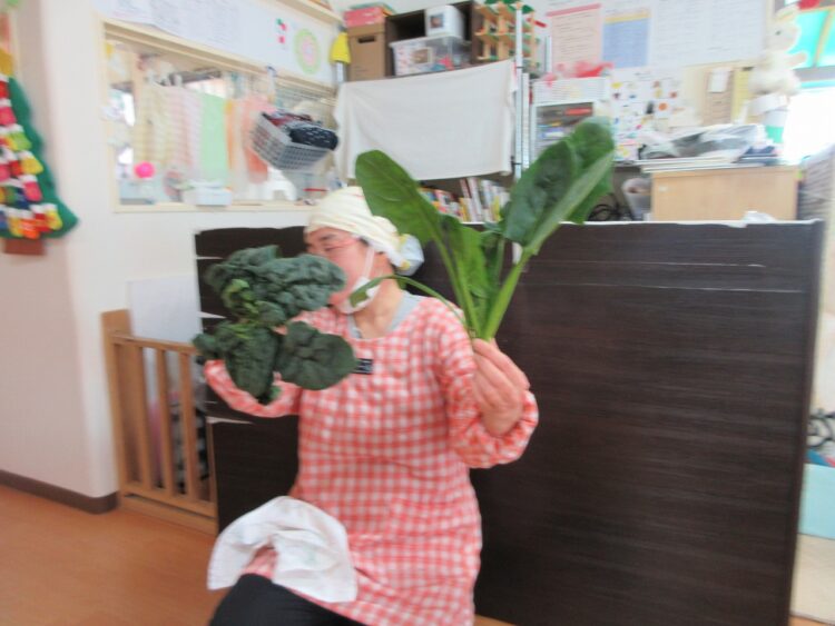 「ちぢみホーレン草は、寒くなっちゃたのかな~?」