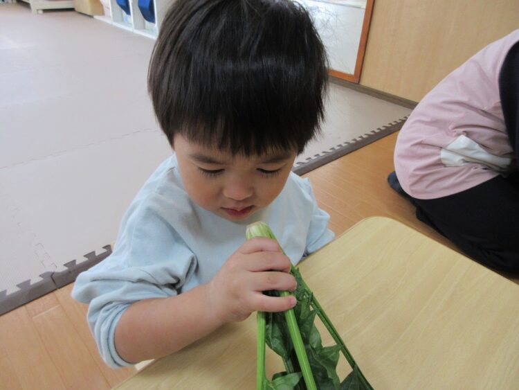「ホーレン草のお尻って、赤いんだよ。 知ってた??」