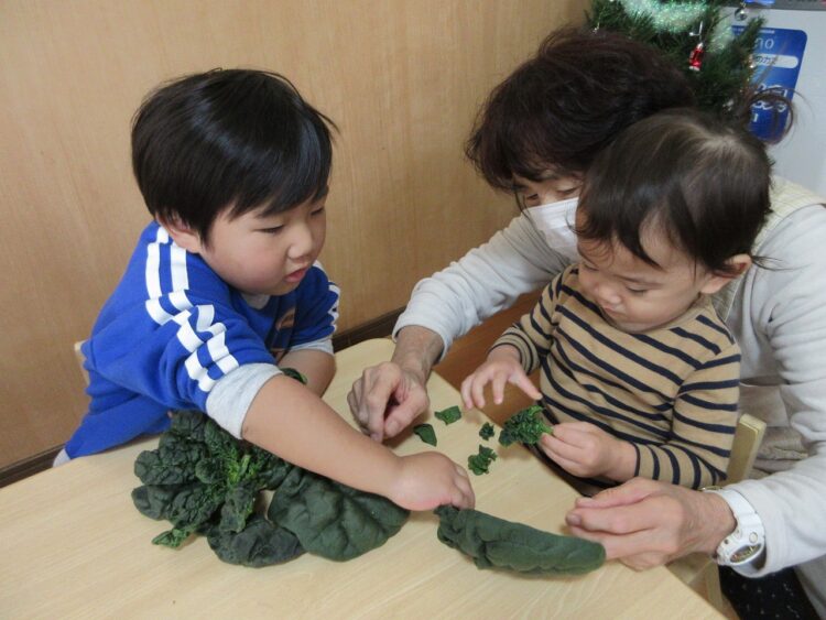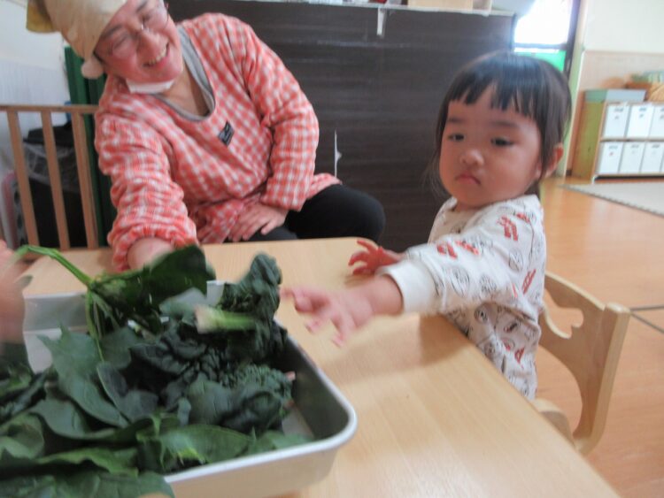 ちぢみホーレン草の感触って、おもしろーい(≧▽≦)