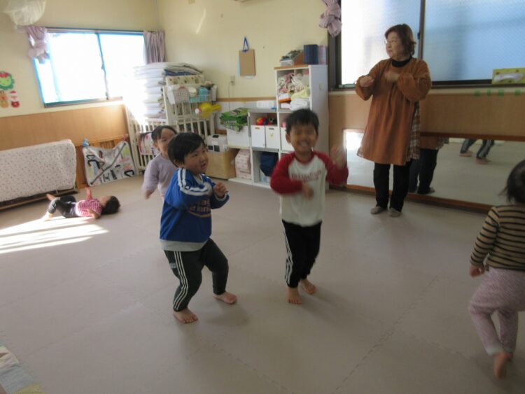 お外に出る前に、体操をして体をあたためよう!!