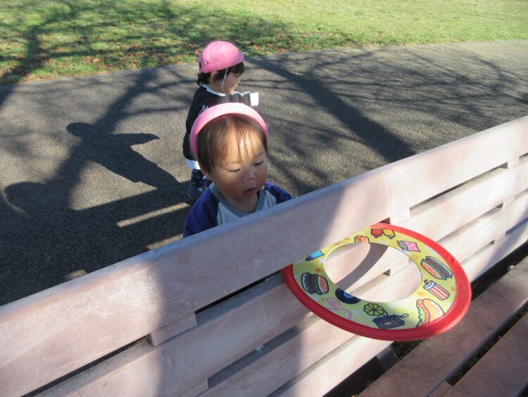 あれれ?? 穴からフリスビーが出てきちゃったね(≧▽≦)