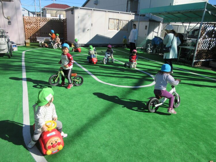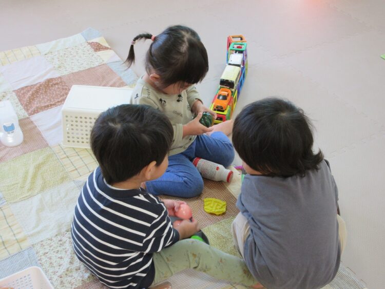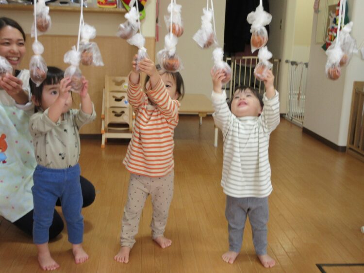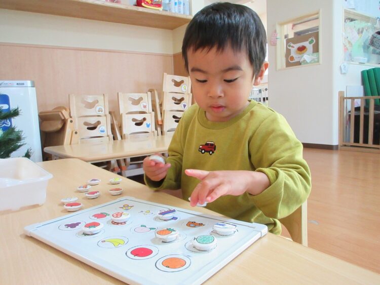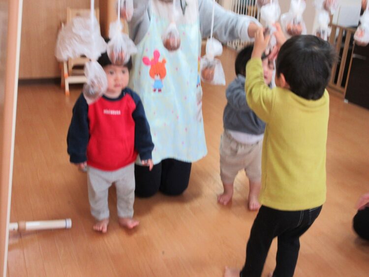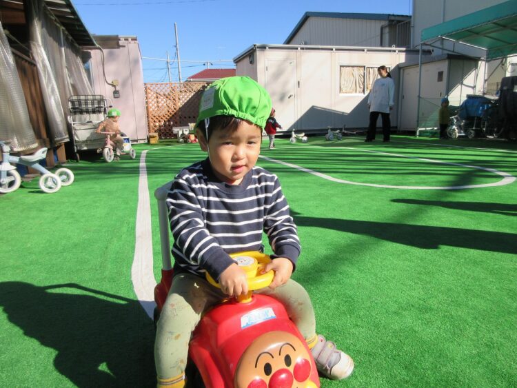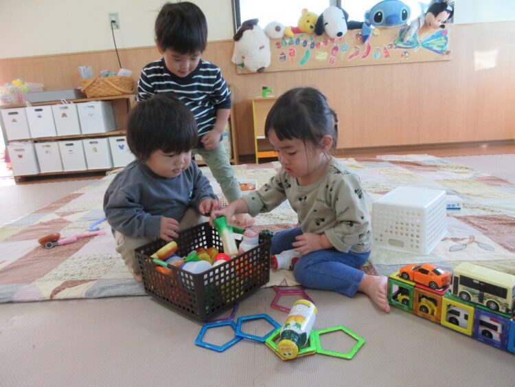 お休み明けでもご機嫌なさくらんぼさんは、朝の自由時間もゆったりと遊ぶにはいることが出来ていました。