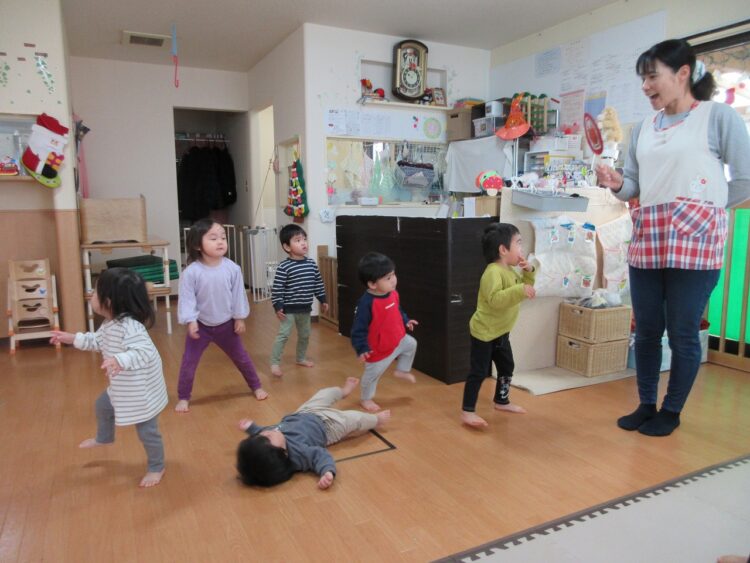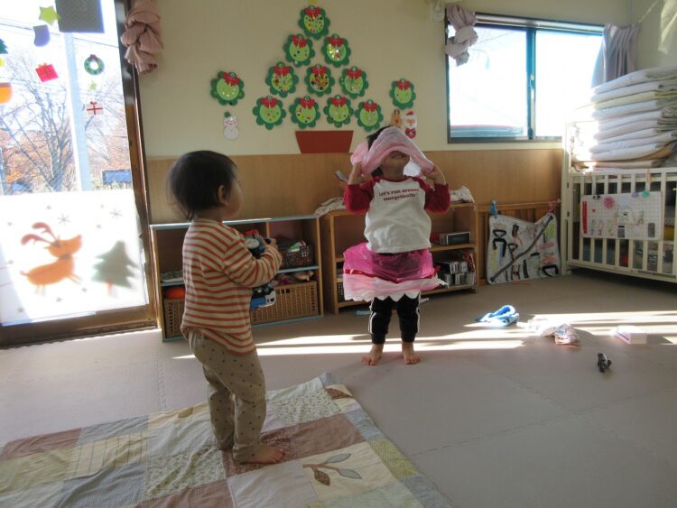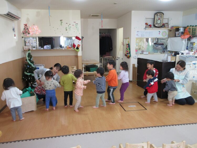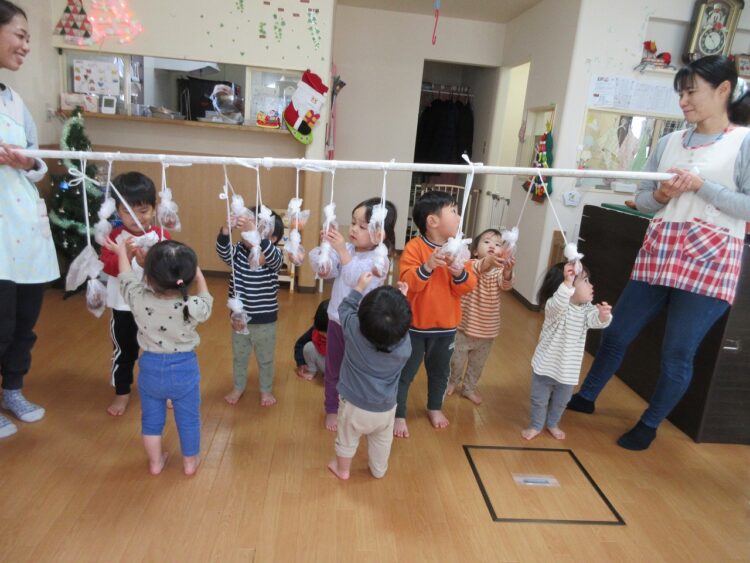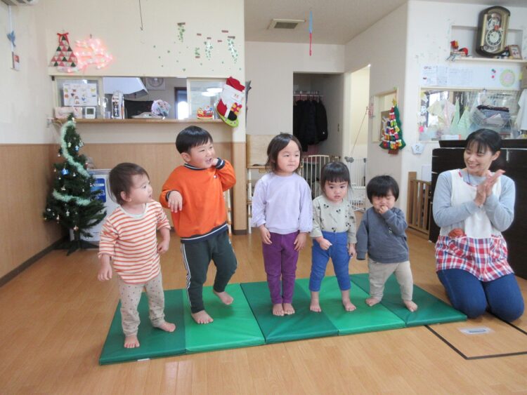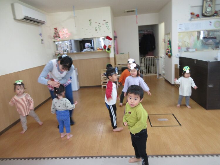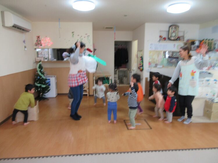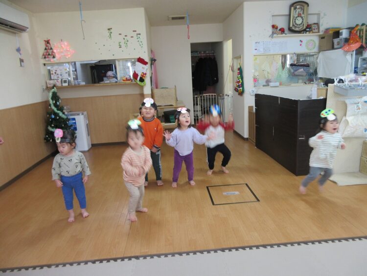 お散歩に行く前に、クリスマス会の予行練習を…ちょこっと。