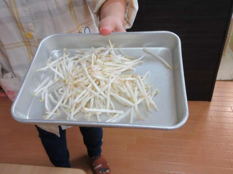 このもやし、今日のお給食にはどんなメニューで出てくるのかな~?