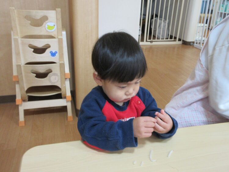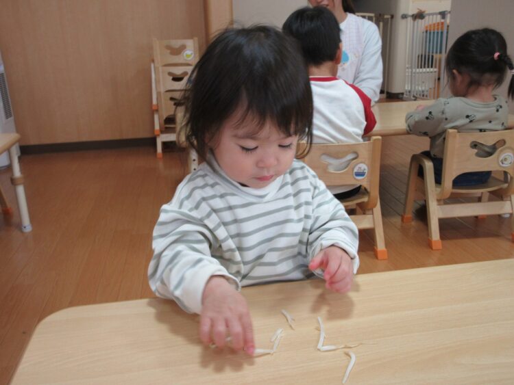 初めは見た目で苦手にする子が多かったですが、今では手慣れてちぎるのも早くなりました!