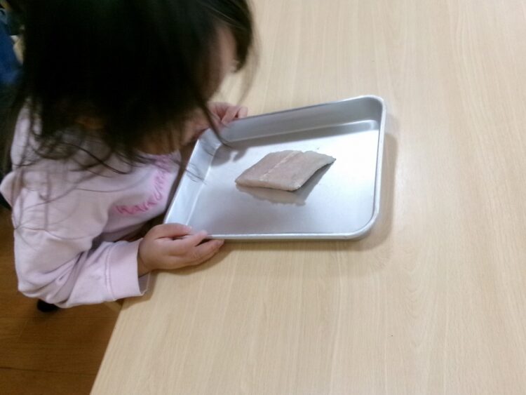 「目には見えない菌が、生のお肉や魚にはついている」と説明しても、まだまだ難しい年齢。