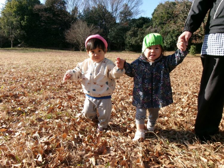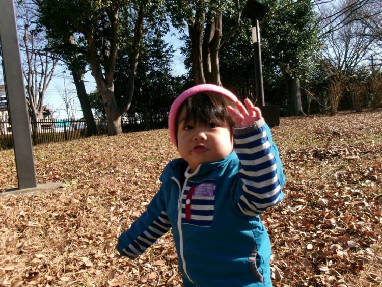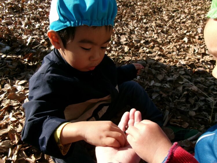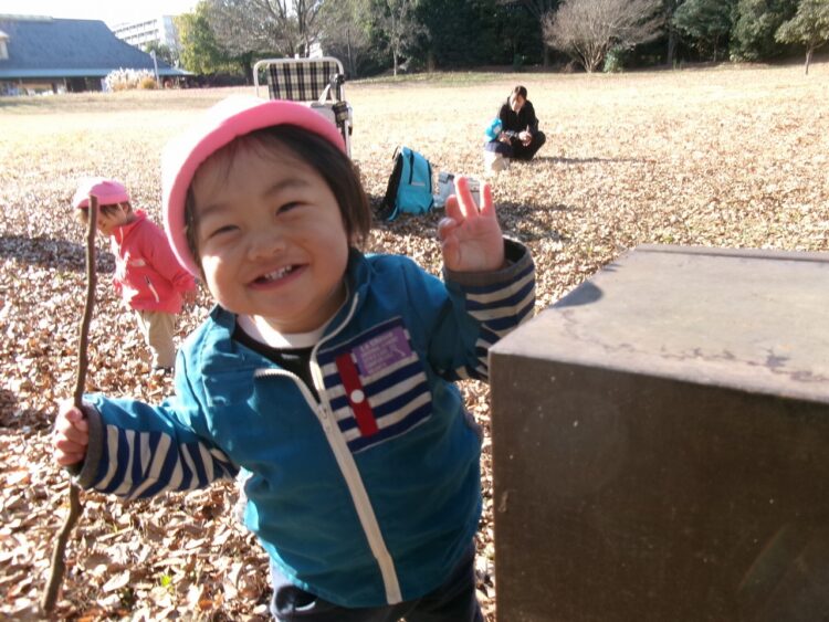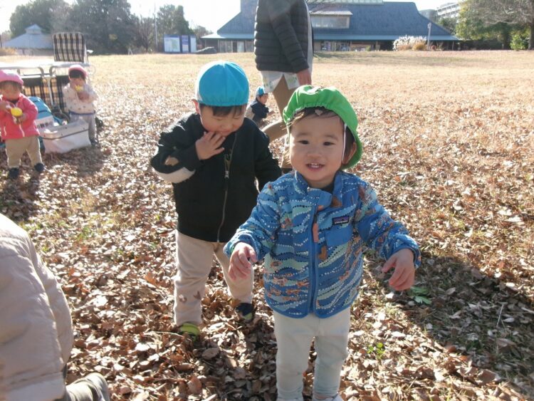 落ち葉を上に投げると、ヒラヒラと落ち葉が落ちてきて面白いね(≧▽≦)