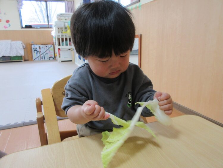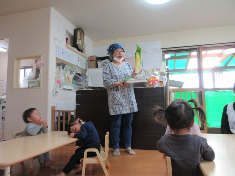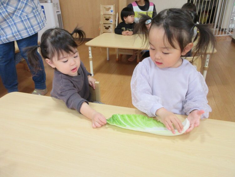 食育に登場したのは「キャベツ」と「白菜」でした♬