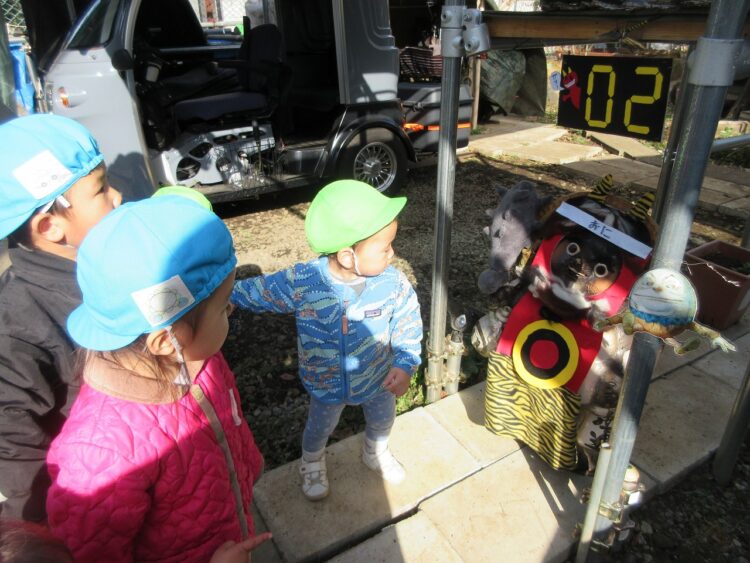 保育園の周辺をぐるっとお散歩しながら、「鬼探しごっこ」へ行ってきました。