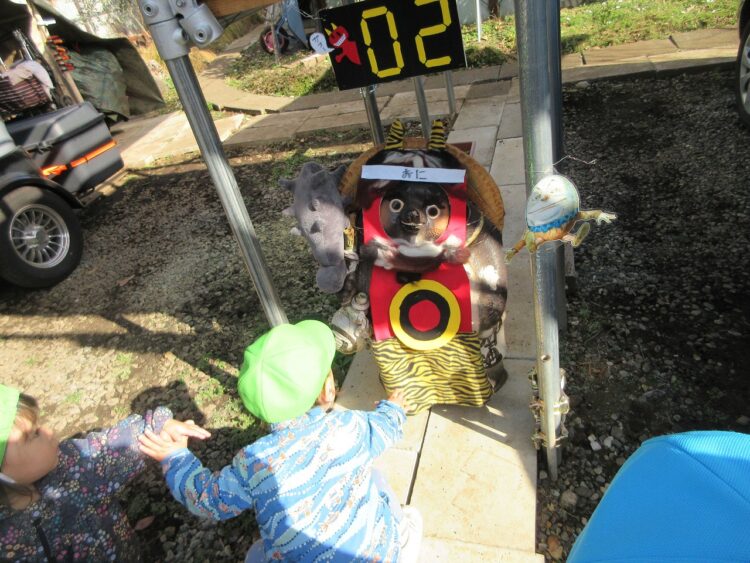 すると、いつものタヌキさんが…うわぁっ!鬼に変身してるー💦