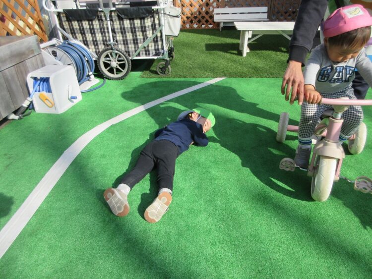 今日もぽかぽか陽気があたたかくて、お外で遊ぶと汗をかいてしまうほどでした。
