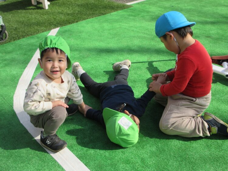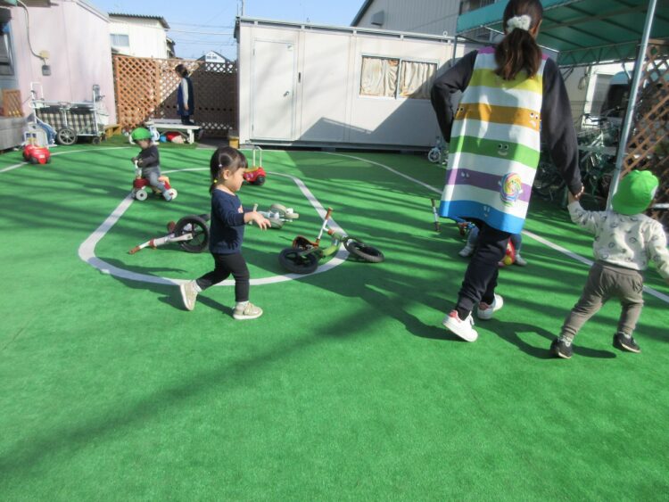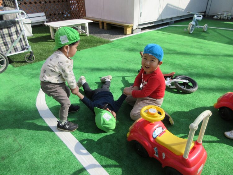 園庭では、楽しそうな遊びが展開していました。