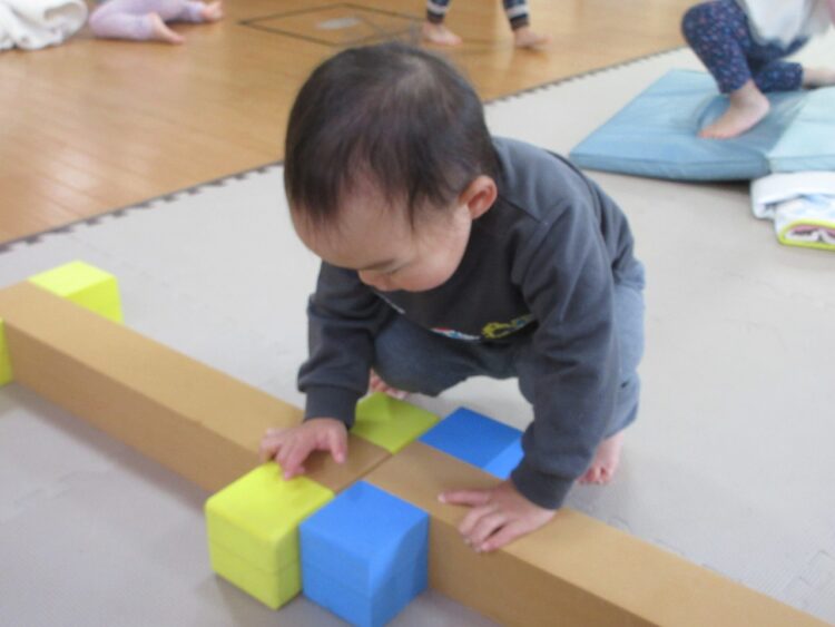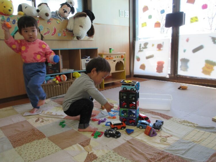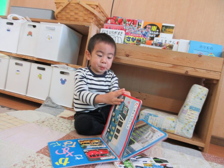お気に入りの絵本を見ていたり、ブロックに夢中になっていたり…