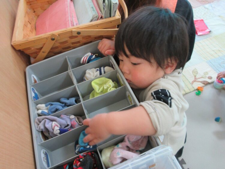 今日は自分で「靴下」をしまうんだ~。