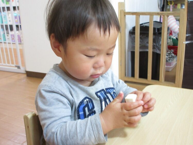 お豆腐はつぶさないように触れるかな??