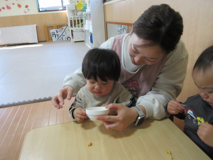 今年度さくらんぼさんで一番月齢の小さな〇〇君。