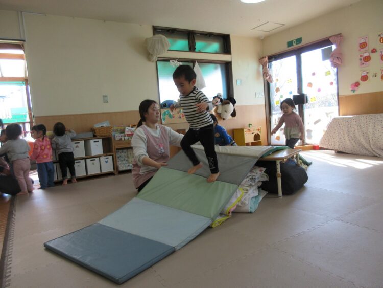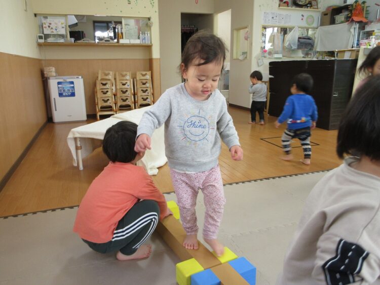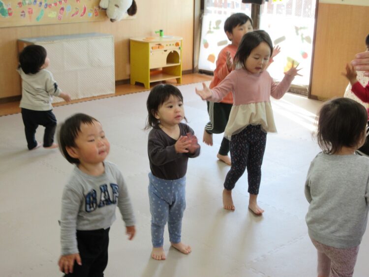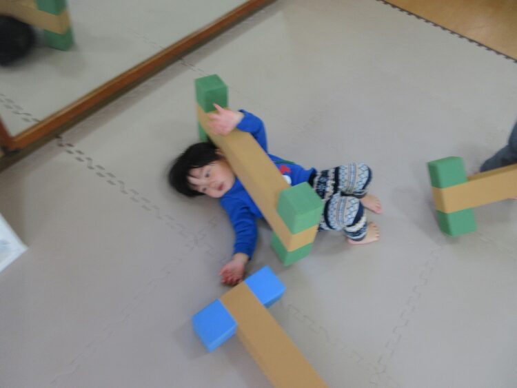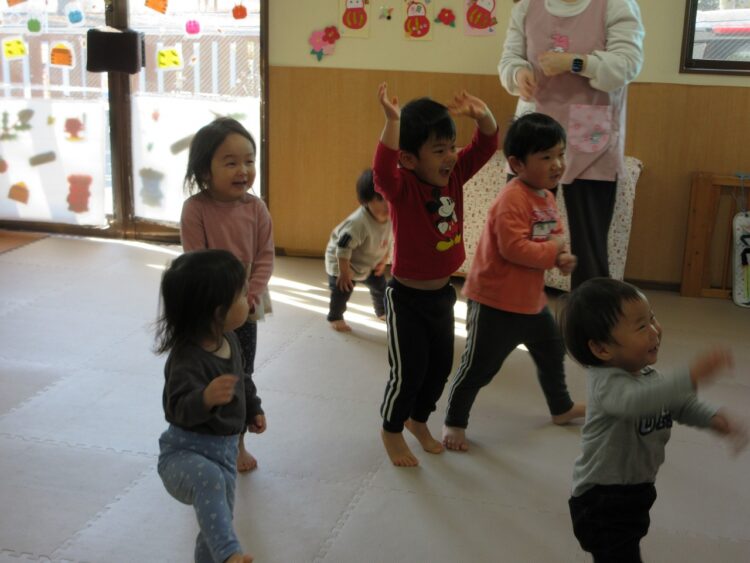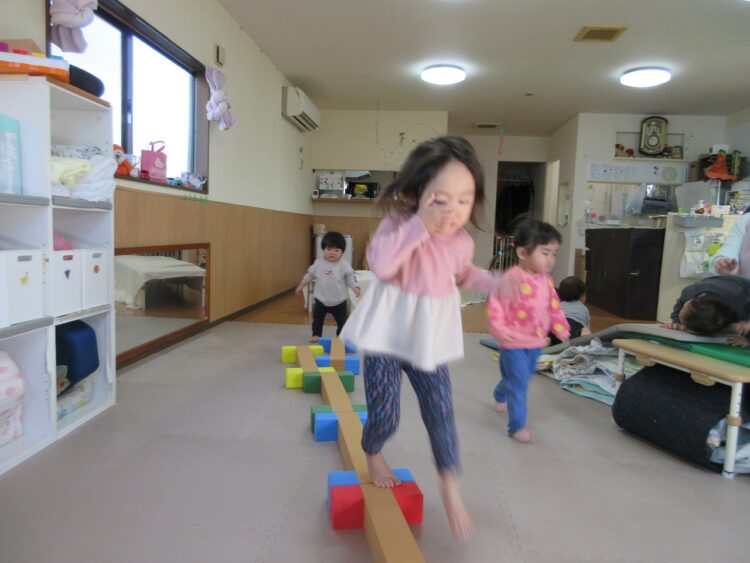 お部屋の中で体をいっぱい動かして遊んでみます♬