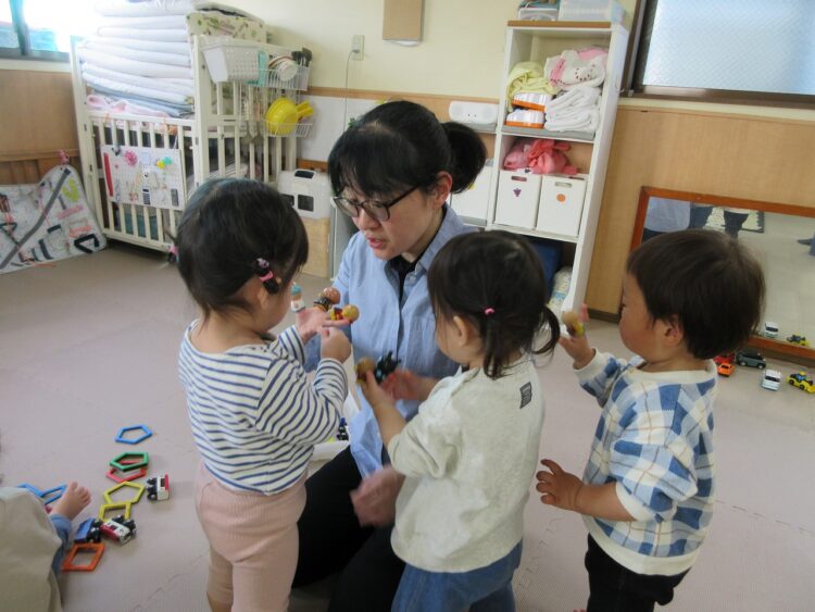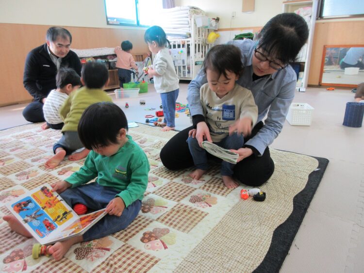 一緒に絵本を読んだり、おもちゃを手渡したり…。