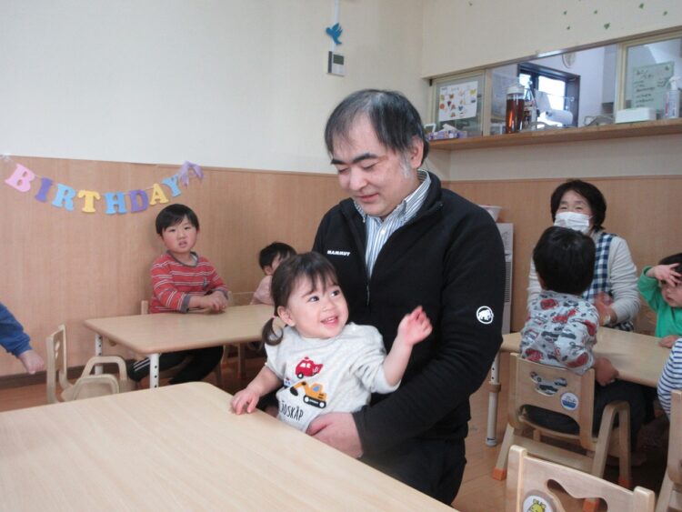 お誕生日の保育参加の為、パパとママがさくらんぼに遊びに来てくれました♬