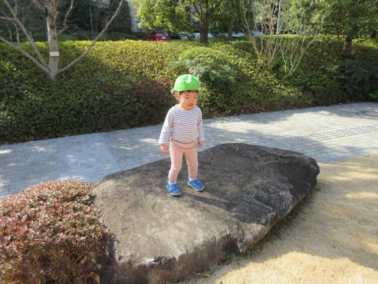 飛び石のアプロ―チでは、電車ごっこも♡
