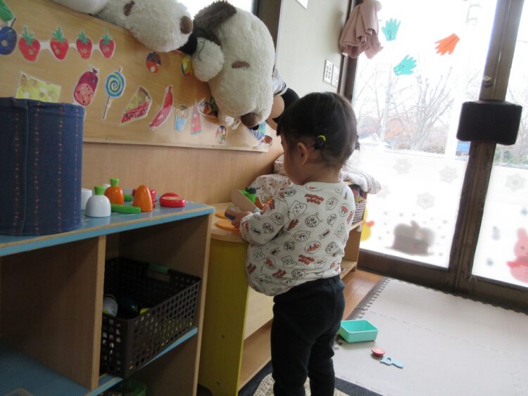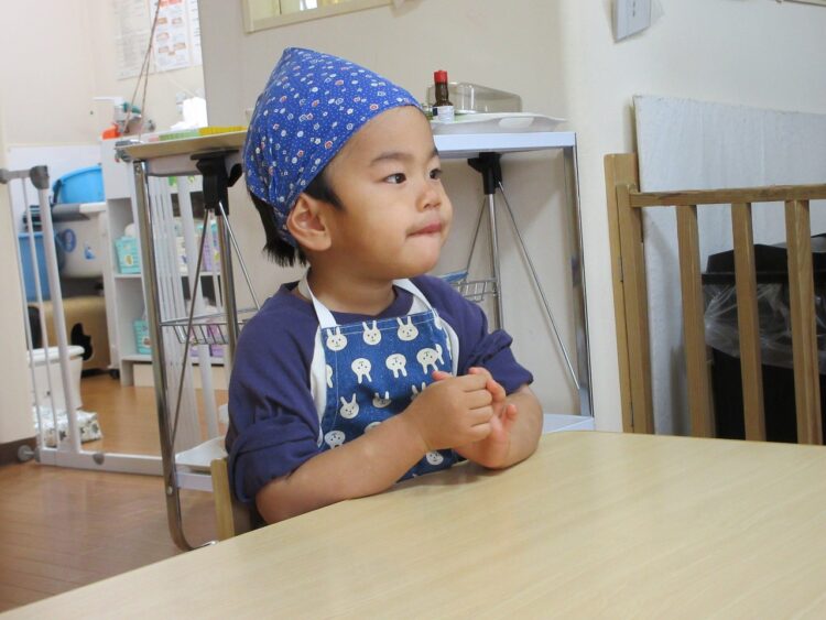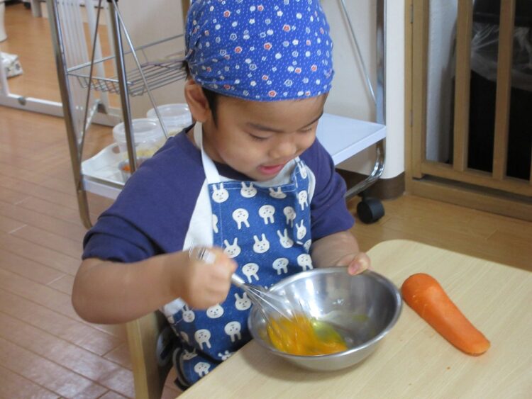 「何作ってるの?」声をかけても、黙々とお料理に集中していた〇〇ちゃんなのでした。