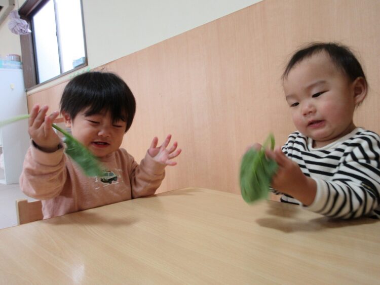 「見てみてー! 葉っぱ(お野菜)なの!」