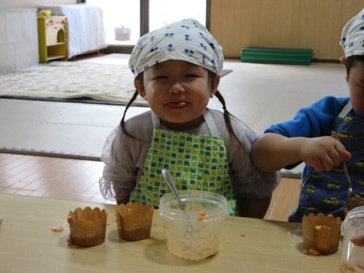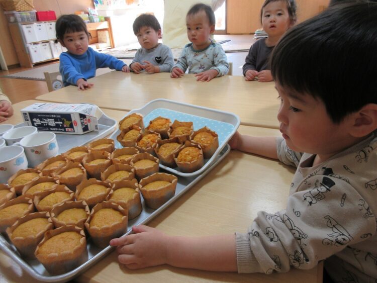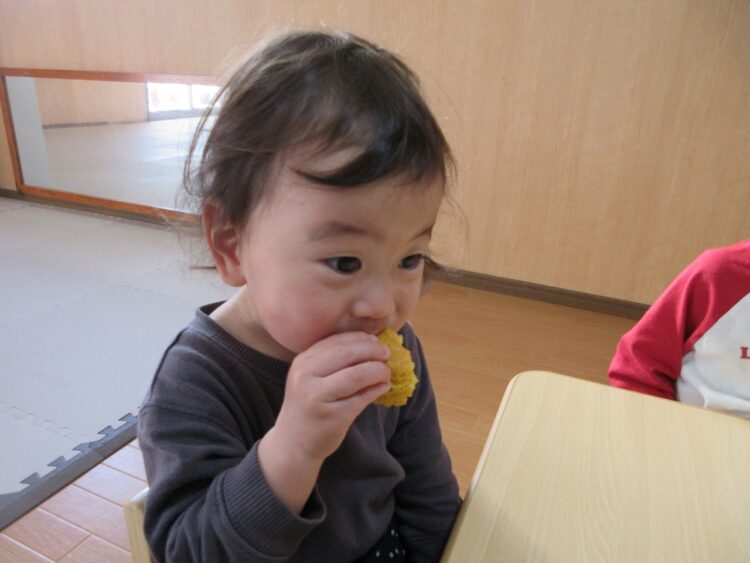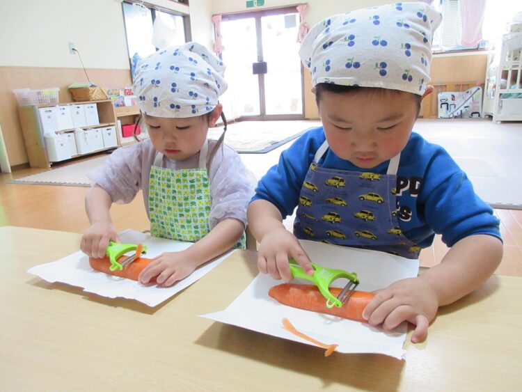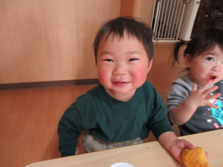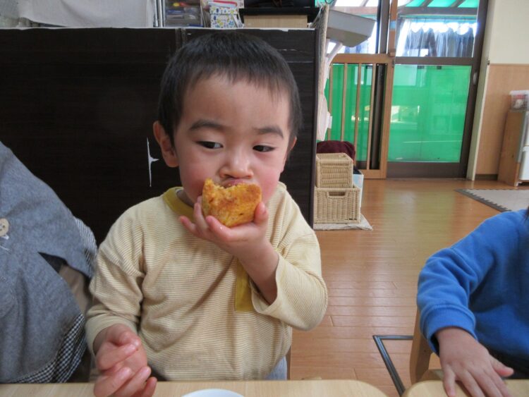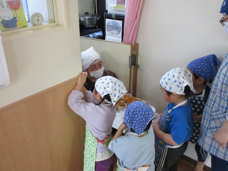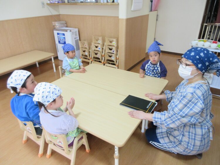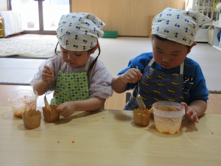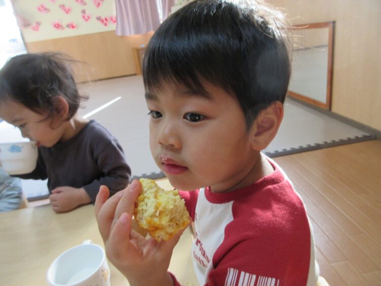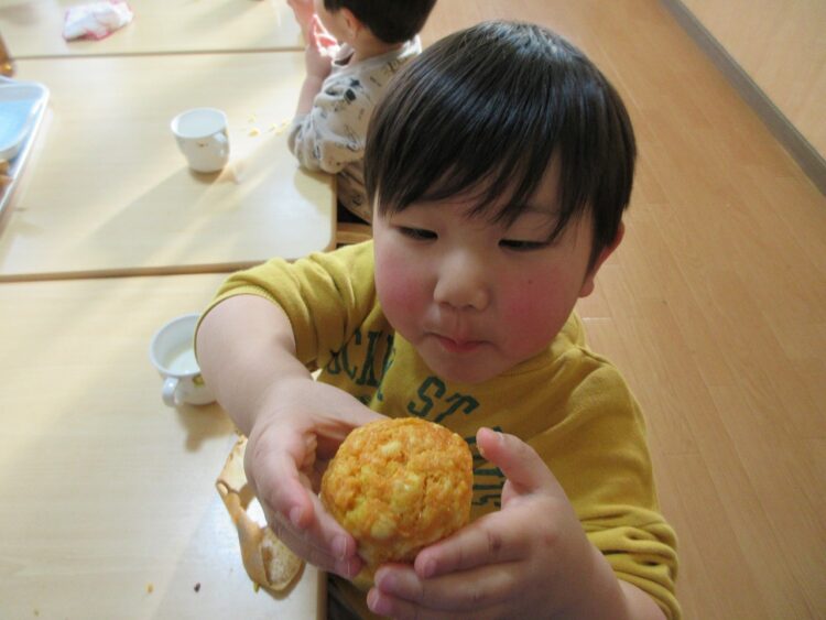 2歳児ぱんだグループさんの「クッキング保育」がありました。