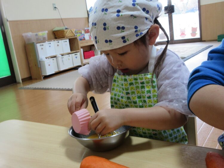 今回は、バレンタインにちなんで「人参カップケーキ」に挑戦です。