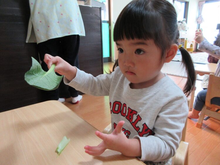 「あっ!お尻が赤くないから、小松菜だぁ」と答えてくれました。