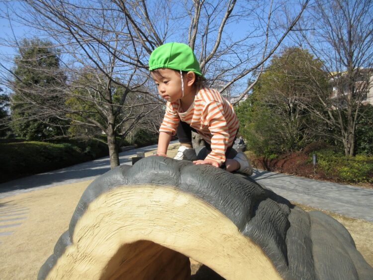 「公園で遊ぶの楽しいね♡」