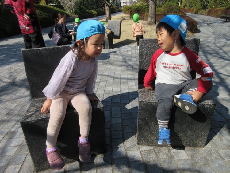 ベンチに座って、日向ぼっこしながら会話も弾みます(´ω`*)