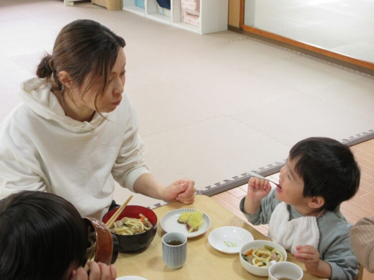 朝の自由遊びからお給食まで、半日ではありますが自分のお子さまとだけではなく、他のお子さまも一緒に過ごすことで、」保育園での生活を一緒に体験し、集団生活の様子を見て・感じてもらえるよう取り組んでいます。