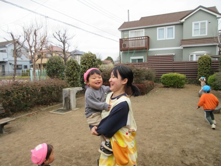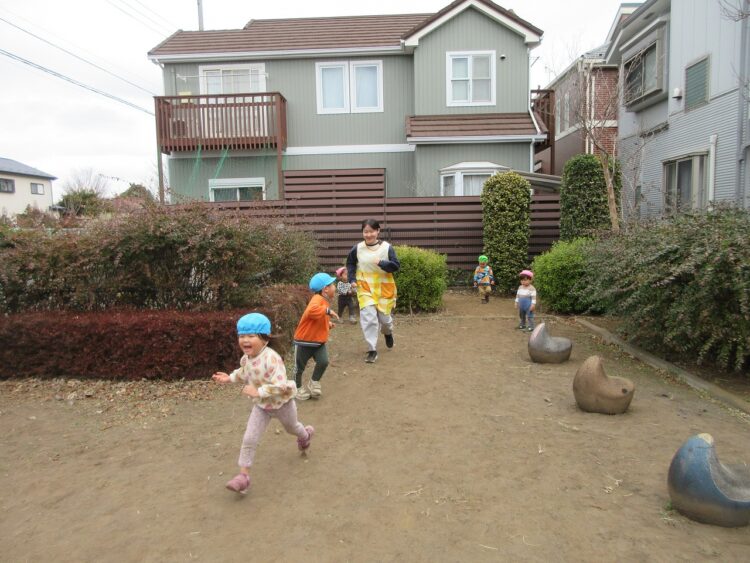 実習生のお姉ちゃんとも、追いかけっこやかくれんぼをして遊び、公園の中をいっぱい走って楽しんでいました。
