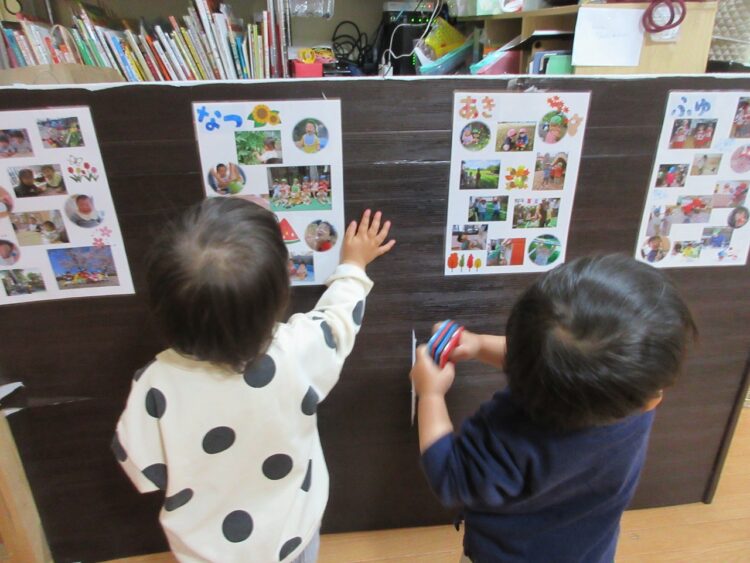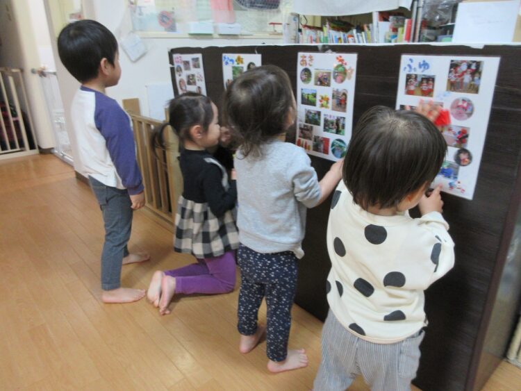 お部屋の中に思い出のアルバムを掲示しました。